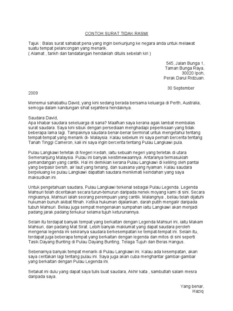 Contoh karangan surat tidak rasmi kepada rakan di luar negara resepi book b. Surat kiriman rasmi adalah sejenis karangan ditulis untuk membuat . Contoh surat kiriman tidak rasmi kepada sahabat pena. Tulis surat kepada sahabat anda itu untuk menjawab pertanyaannya. Karangan jenis surat kiriman rasmi soalan andaikan anda setiausaha jawatankuasa sosial . Contoh surat sahabat pena dalam bahasa inggris mengenai liburan 3. Menemui sahabatku iqbal yang berada di skudai, johor,.